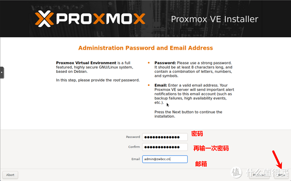 6、设置密码、和邮箱,继续点击Next(下一步)。