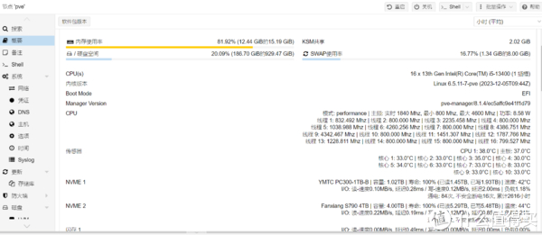 1、pve默认概要中不会显示cpu温度、硬盘信息等,通过pve工具箱可以修改信息概要页面,使其信息显示更加完善。