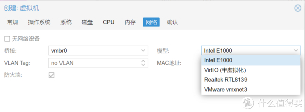 8、网络设置中选择兼容性最高的e1000即可。