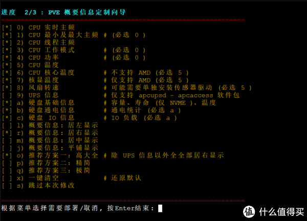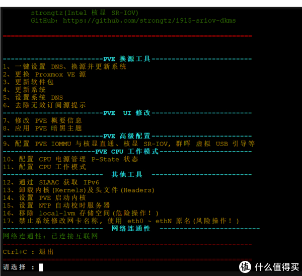 2、进入脚本优化选项,脚本覆盖了PVE的绝大部分必备优化选项,需要使用那个直接输入数字然后按回车即可。