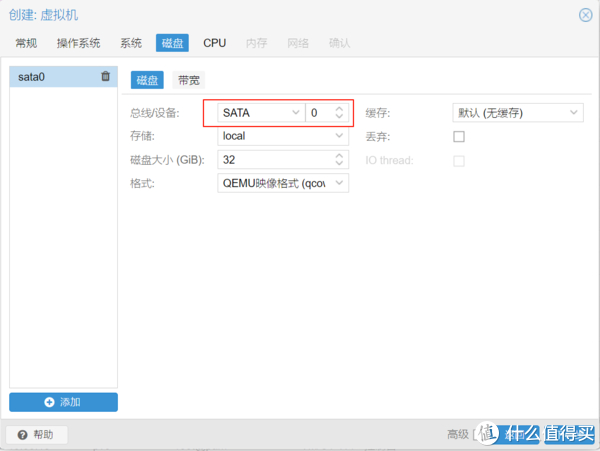 5、硬盘中总线选择sata,其他保持默认。